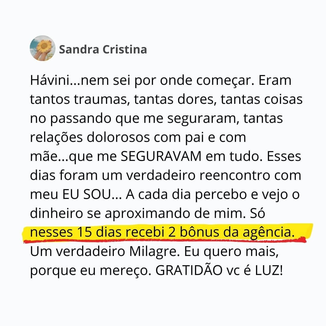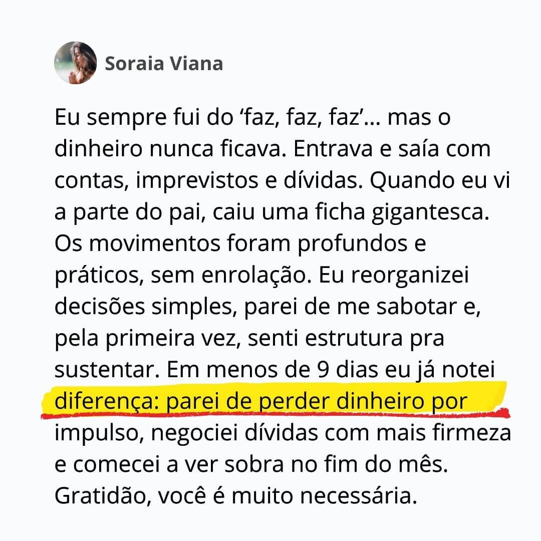 ✅ Parar de carregar culpas, cobranças e pesos familiares que sabotam sua prosperidade.